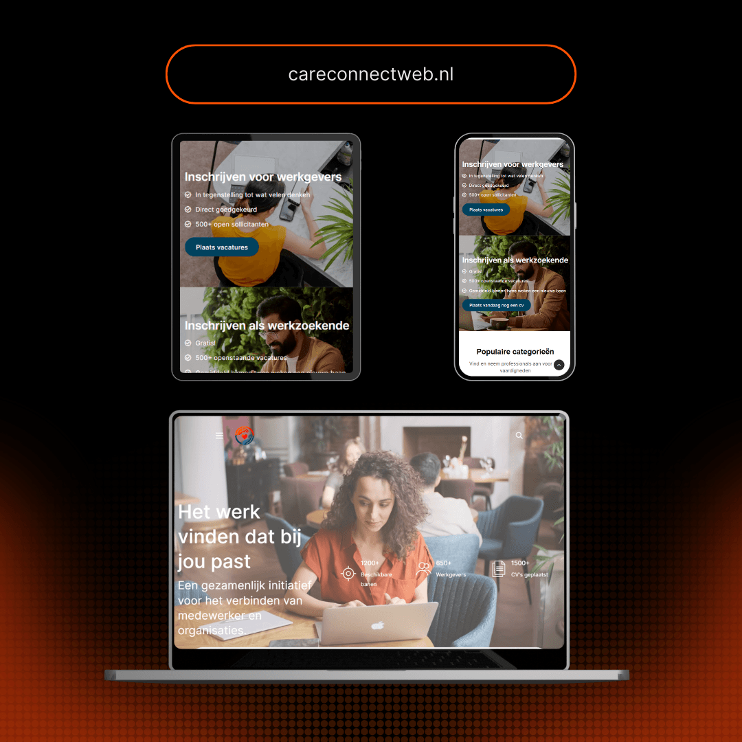 Careconnectweb.nl is een nieuw vacatureplatform gericht op zorgprofessionals en zorginstellingen in Nederland. Het platform is ontworpen om eenvoud, overzicht en veiligheid te bieden — zonder de nadelen van open marktplaatsen. In een periode van 8 weken ontwikkelden wij een gebruiksvriendelijke WordPress-website met maatwerk functionaliteiten voor gebruikersbeheer, vacatureplaatsing en abonnementsstructuur.
