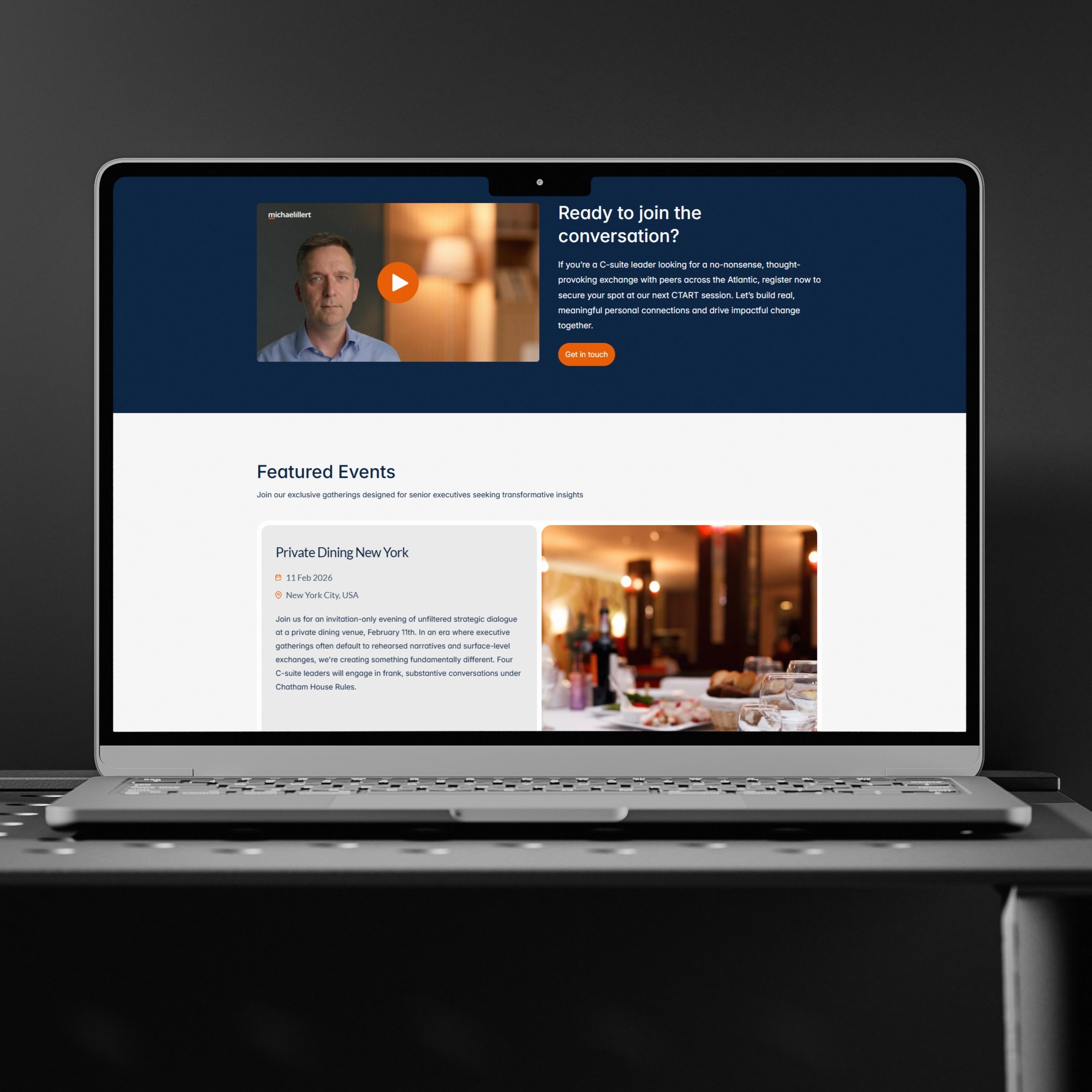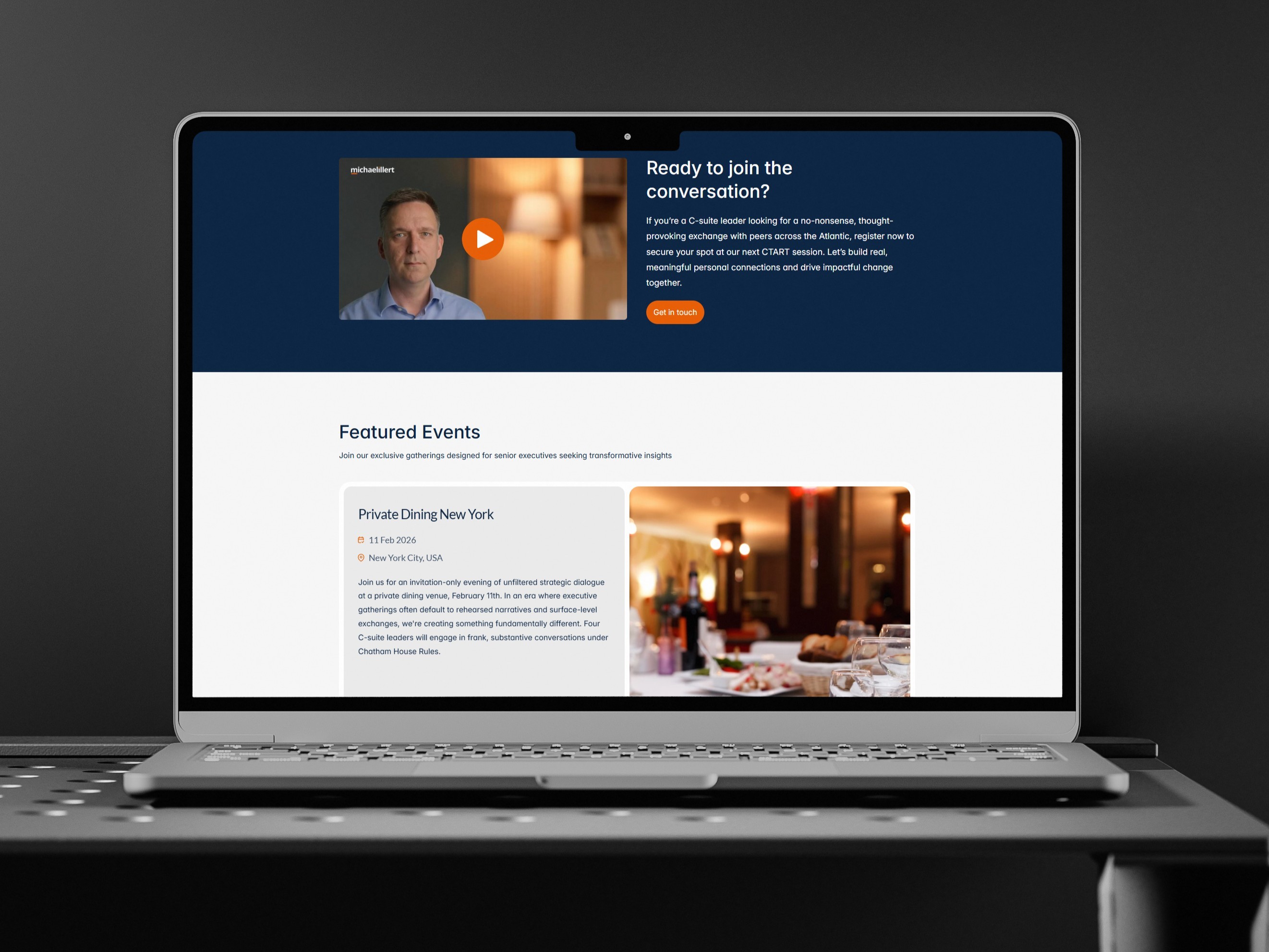 De website is live gegaan als het centrale digitale visitekaartje van CTART, klaar om events te promoten en nieuwe deelnemers aan te trekken in een van de meest exclusieve niches: C-suite networking.