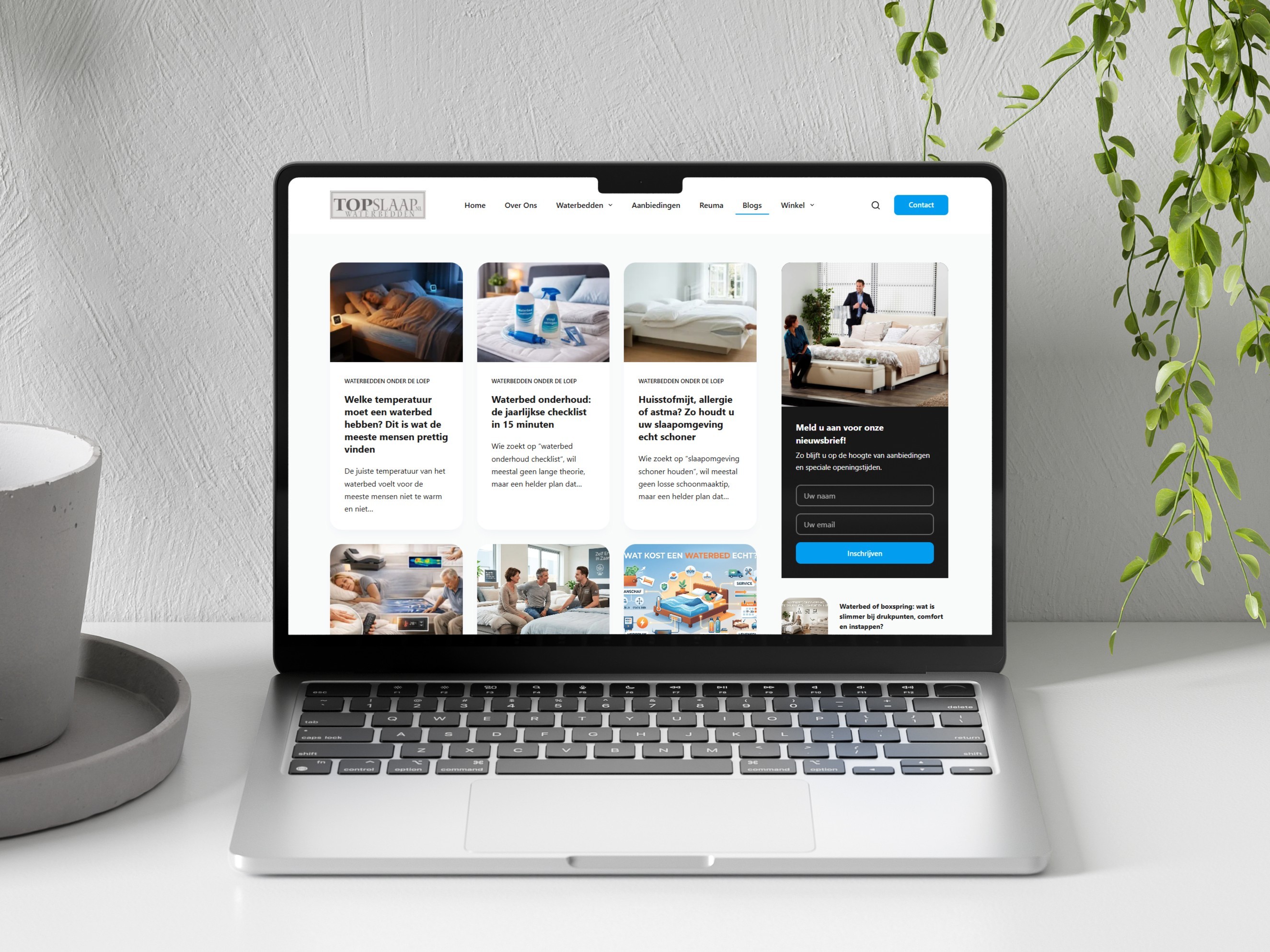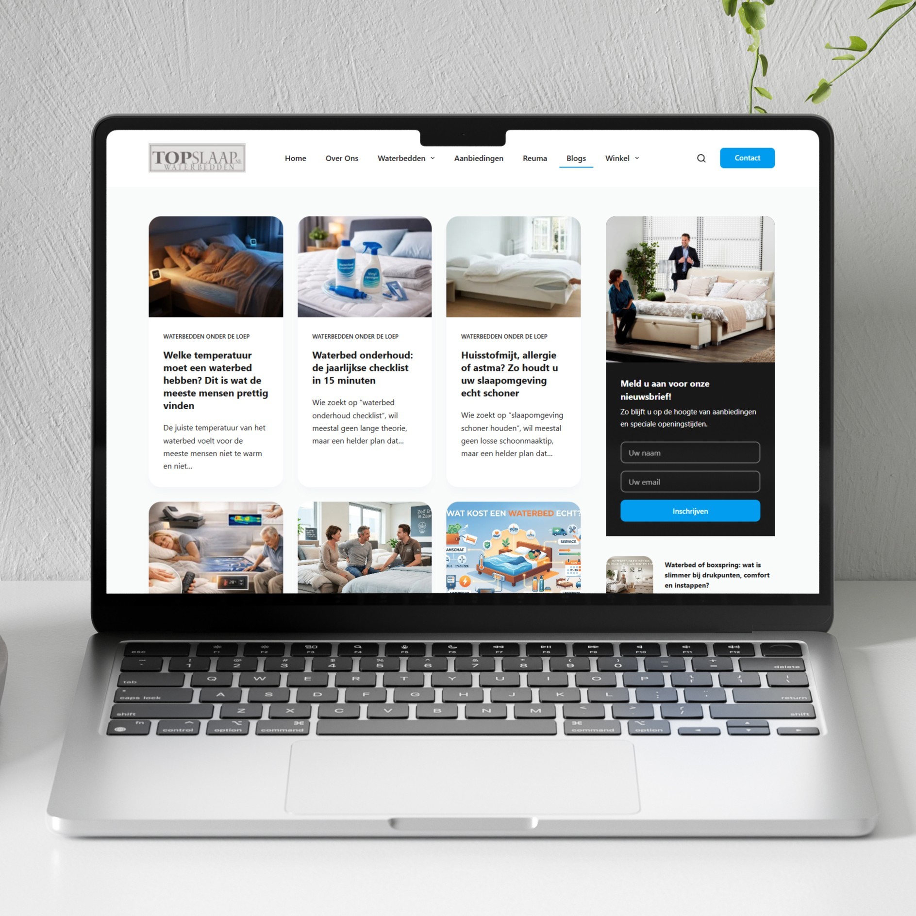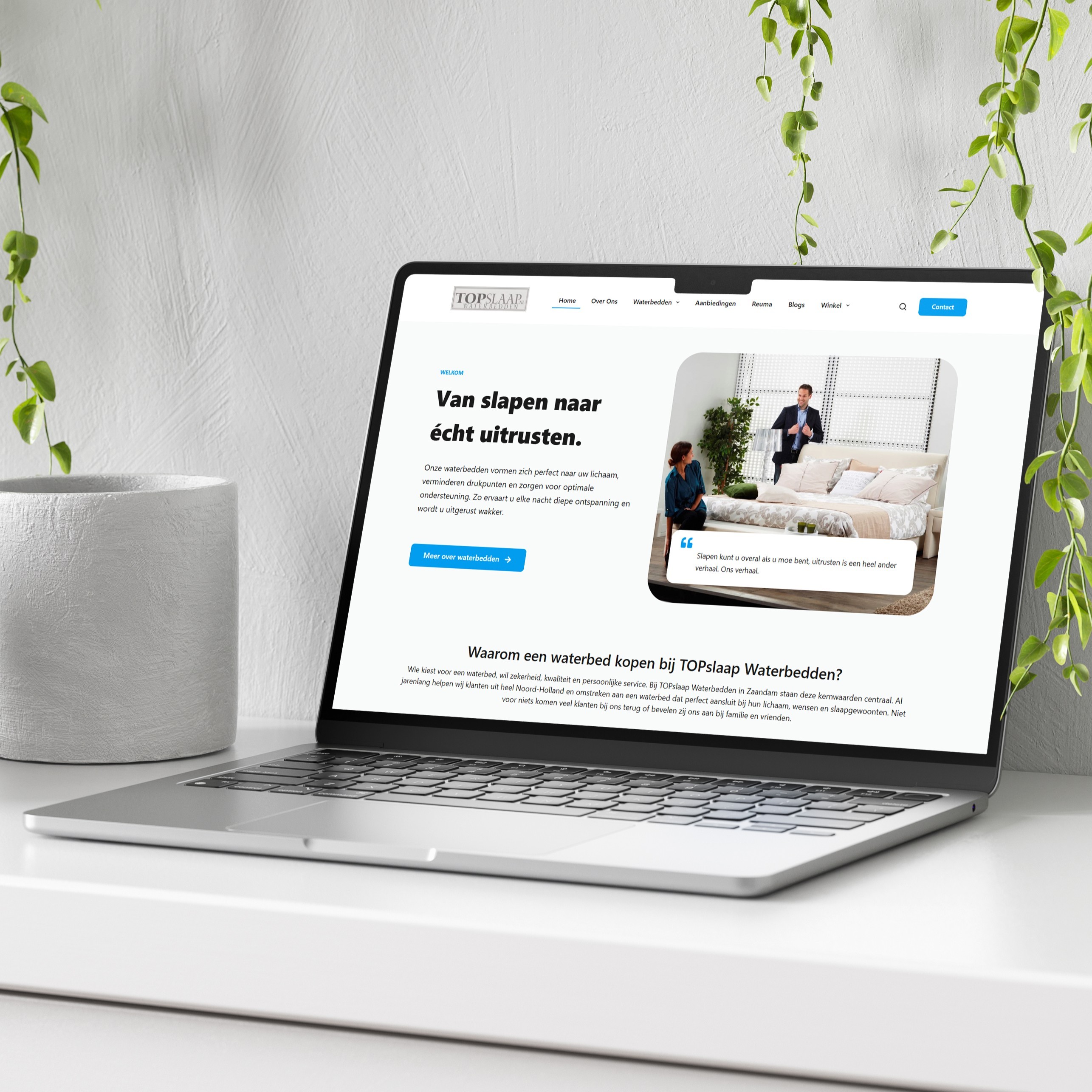 Topslaap.nl is geen opgelapte oude website, maar een volledig nieuw gebouwd platform dat de waterbeddenspecialist van Noord-Holland online op het juiste niveau presenteert. De site laadt aanzienlijk sneller, biedt een uitgebreide informatiestructuur en is technisch klaar voor de SEO-campagne die nu loopt. Precies wat je verwacht van een specialist die al jaren de grootste is in de regio en dat nu ook online wil waarmaken.