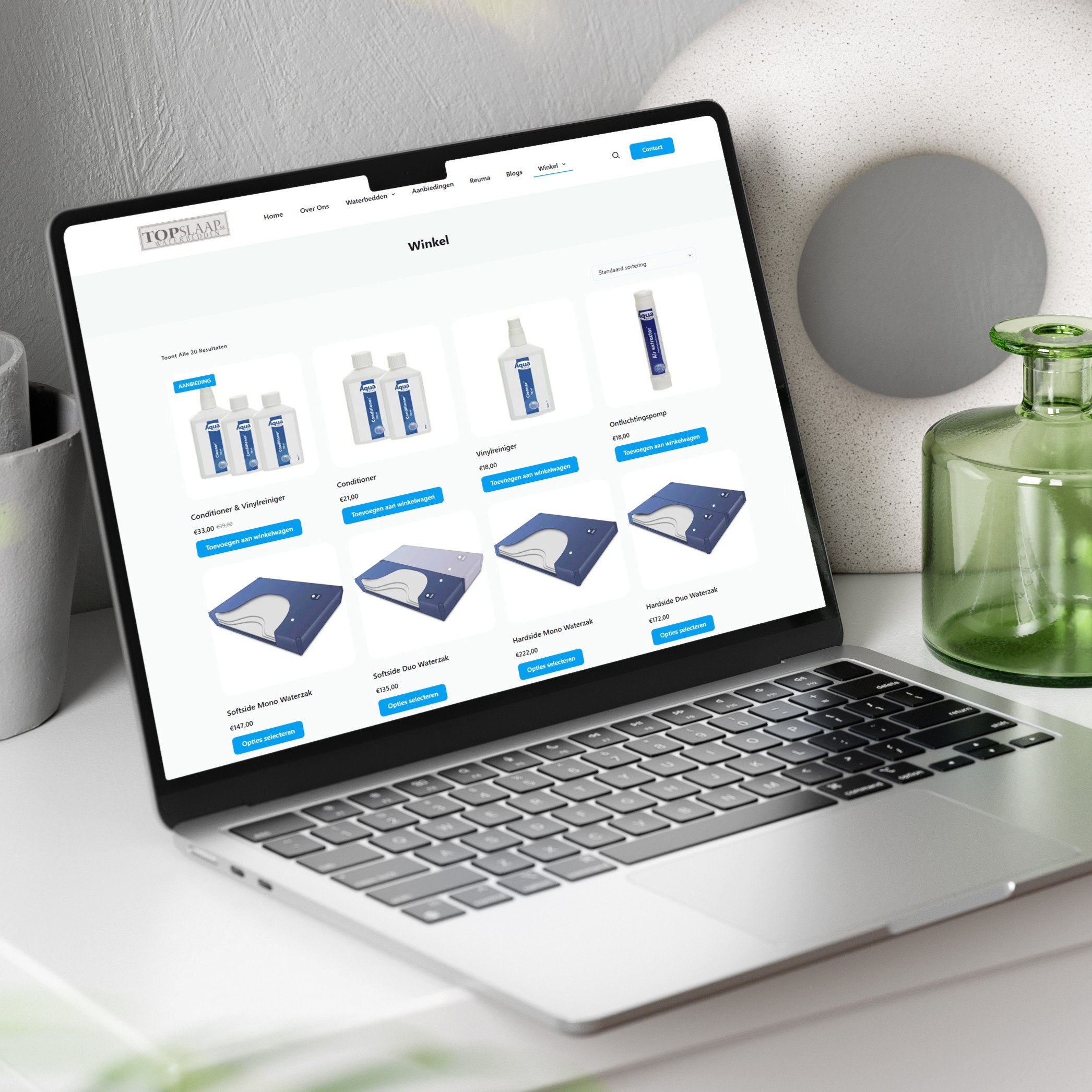 Klantdoelen: Een snelle, professionele website die het complete waterbedassortiment overzichtelijk presenteert, vertrouwen wekt bij nieuwe bezoekers en een solide basis biedt voor organische groei via SEO.